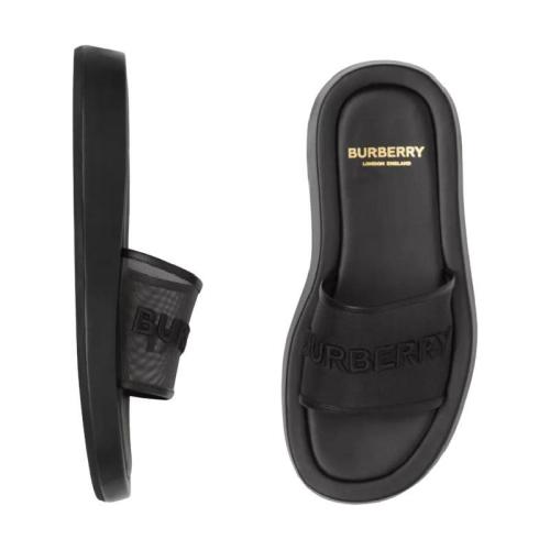 BURBERRY 22年秋冬 女士 徽标刺绣皮革网布拖鞋 80392501 预定商品1-3周发货
