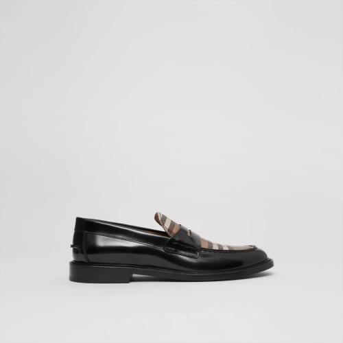 BURBERRY 22年秋冬 男士 Vintage 格纹裁片拼皮革休闲便鞋 80574081