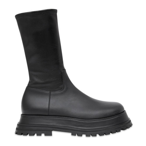 BURBERRY/博柏利 女士黑色柔软皮革混纺小羊皮时尚休闲筒靴短靴踝靴皮靴女靴 8043647