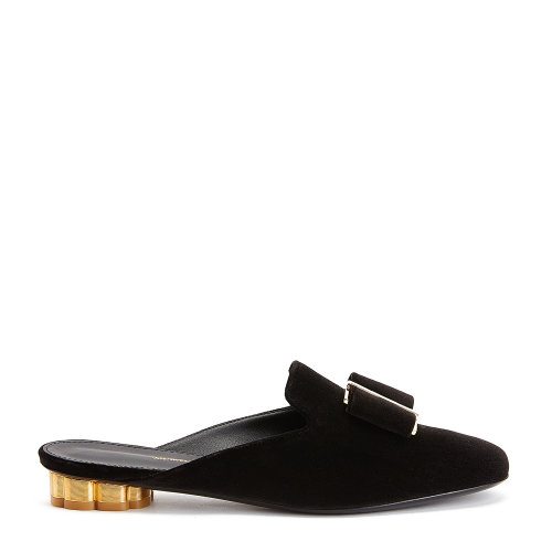 Salvatore Ferragamo/菲拉格慕 黑色 女士蝴蝶结花朵造型跟丝绒平底凉拖 680205-01M949-SCIACCA T