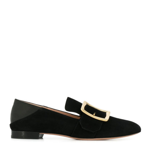 BALLY/巴利 女士黑色绒面侧扣乐福鞋懒人一脚蹬鞋浅口鞋时尚单鞋女鞋 6228187