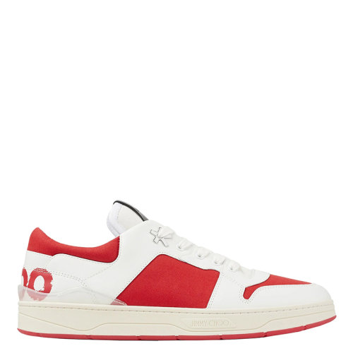 Jimmy Choo/周仰杰 FLORENT系列 男士白色小牛皮拼红色帆布反光底运动鞋EHPFLORENTMZUK0C9192-WR