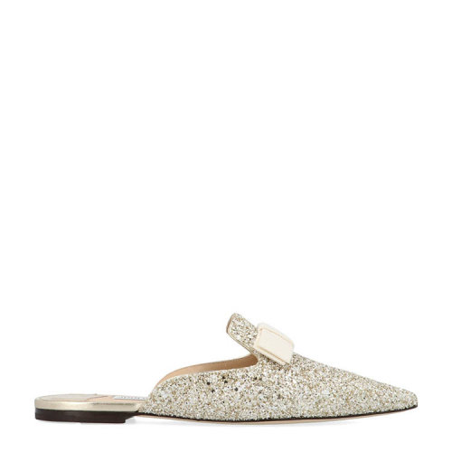 Jimmy Choo/周仰杰 女士米色金闪片蝴蝶結平跟鞋 GALAXYFLATTIT
