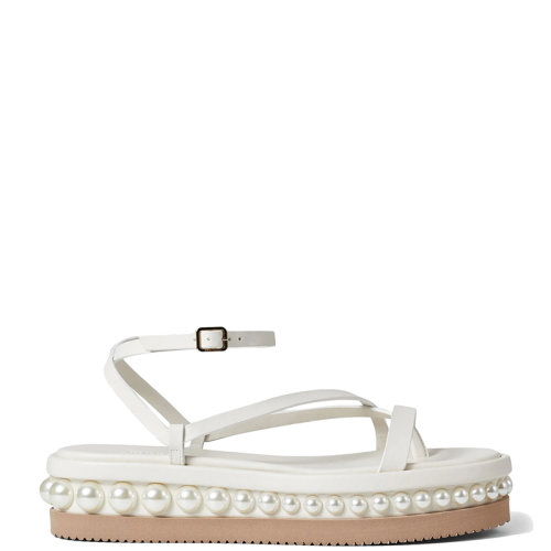 Jimmy Choo/周仰杰 22年秋冬新款 Pine Flat系列 女士奶油色小牛皮和白色珍珠厚底凉鞋PINEFLATZXA-LATTE