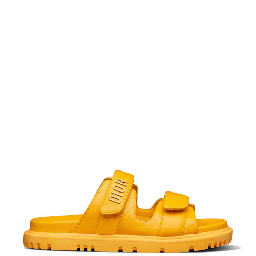 DIOR/迪奥 22年秋冬新款 DIORACT系列 女士黄色羊皮革魔术贴饰带凉拖KCQ718LAB_S18Y