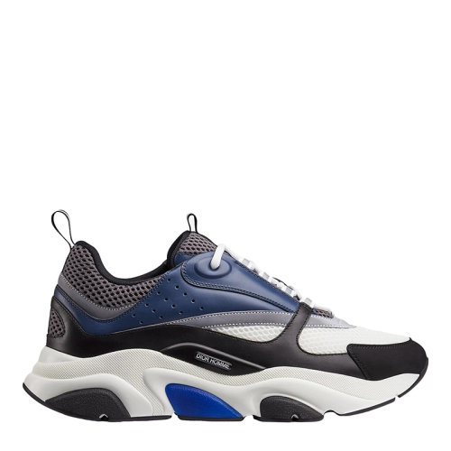 DIOR/迪奥 2021年早春新款 白色和灰色技术网眼 搭配蓝色 黑色和灰色小牛皮 B22运动鞋3SN231YUL_H569