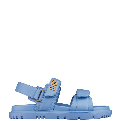 DIOR/迪奥 22年早春新款 DIORACT系列 女士矢车菊蓝色羊皮革金色LOGO魔术贴凉鞋KCQ547LAB_S11N