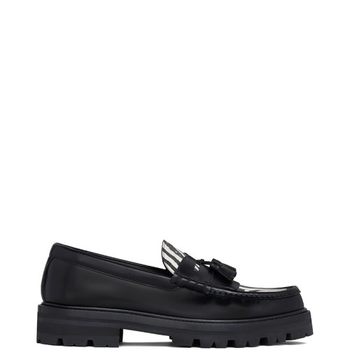 CELINE/赛琳 22年秋冬新款 MARGARET系列 男士黑色抛光牛皮革斑马纹饰流苏粗跟乐福鞋346533654C.38AW