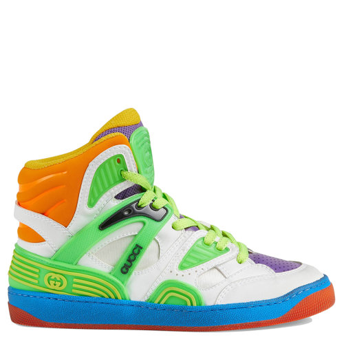GUCCI/古驰 21年早秋新款Gucci Basket球鞋系列 男士彩色混合面料网格和GG橡胶细节高帮运动鞋6613012SH809062