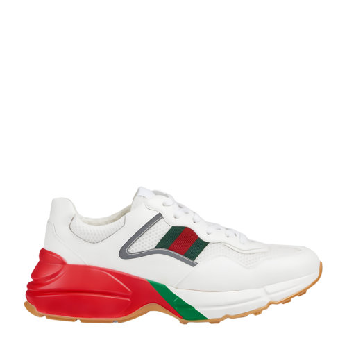 GUCCI/古驰 Rhyton系列 21早春新款 男士白色皮革和红绿织带运动鞋老爹鞋6434912H0609088