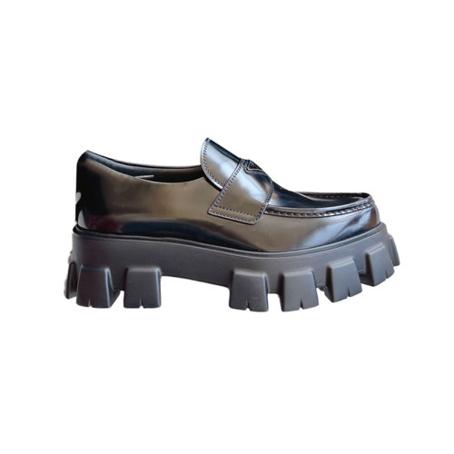 Prada 普拉达 男士黑色锯齿厚底鞋 尖头乐福鞋