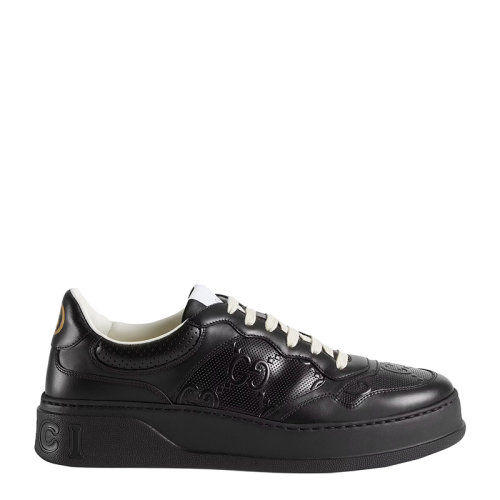 GUCCI/古驰 男士黑色皮革双G字母印花GG压纹运动鞋6695821XL101000
