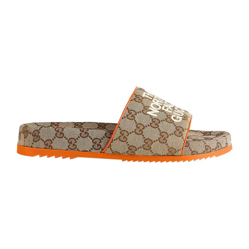 GUCCI/古驰 22秋冬款 The North Face联名系列 男士米色皮革饰有帆布双G图案鞋面刺绣LOGO图案平底拖鞋?6799042HKM09770