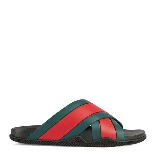 GUCCI/古驰 男士红绿拼色橡胶经典条纹织带鞋底双G徽标压花交叉绑带露趾平底鞋沙滩鞋凉鞋拖鞋男鞋 630326-J8700-8460