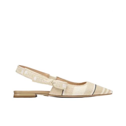 DIOR/迪奥 新款米色棉质刺绣条纹图案芭蕾鞋KCB660 STE 16T【主推】 女鞋