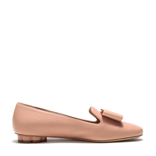 SalvatoreFerragamo/菲拉格慕 女士SARNO系列裸粉色牛皮蝴蝶结花朵跟造型平跟鞋 0684337