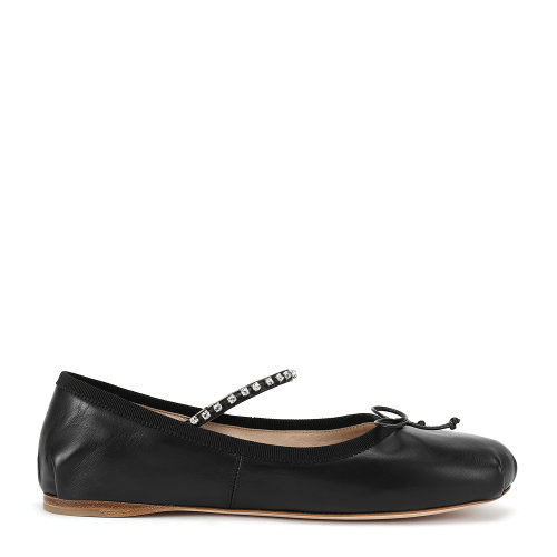 MiuMiu/缪缪 黑色 女士仿水晶装饰皮革芭蕾平底鞋 5F744C_038_F0002_F_B005