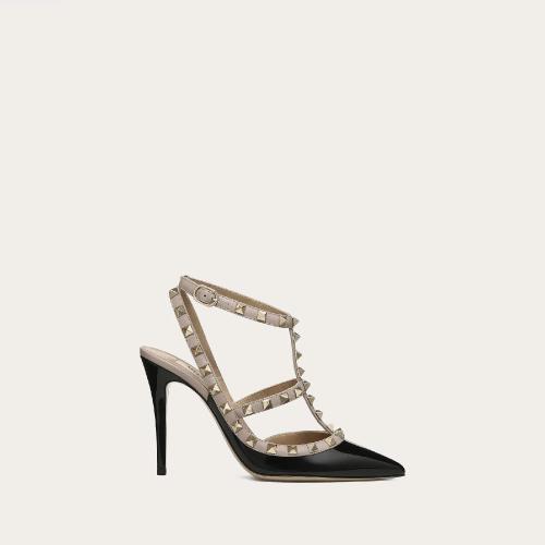 VALENTINO华伦天奴 22年春夏 女士 高跟鞋 ROCKSTUD 漆皮系带铆钉高跟鞋 (鞋跟高10厘米) ZW2 预定商品1-3周发货