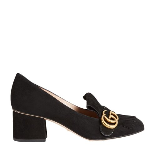 GUCCI/古驰 女士经典纯色麂皮双G和流苏装饰高跟鞋浅口鞋女鞋