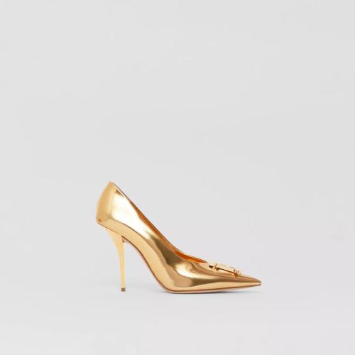 BURBERRY 22年秋冬 女士 专属标识装饰金属感皮革高跟鞋 80558901