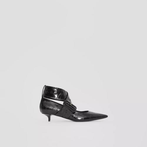 BURBERRY 22年秋冬 女士 压花皮革尖头猫跟鞋 80601401