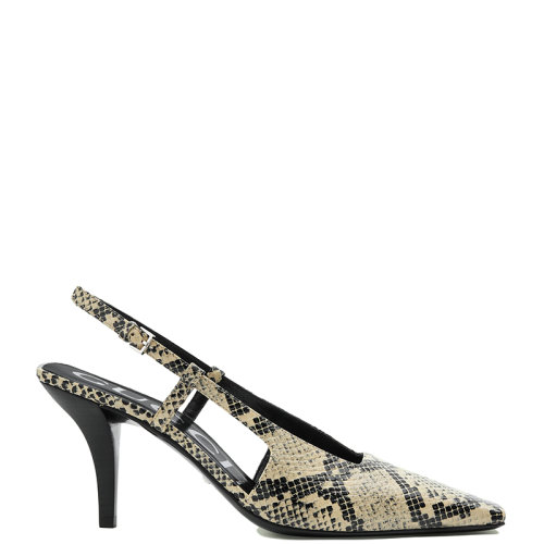 GUCCI/古驰 22年春夏新款 女士米色/棕色皮革蟒蛇纹印花中跟浅口鞋?67466619Y009719