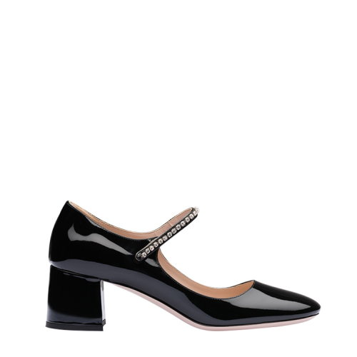 MiuMiu/缪缪 黑色 女士仿水晶装饰玛丽珍高中跟鞋 5I964C_LXN_F0002_F_055