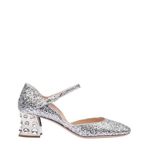 MiuMiu/缪缪 银色 女士通体亮片仿水晶装饰跟玛丽珍中跟鞋 5I966C_ME6_F0118_F_D055