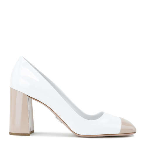 PRADA/普拉达 白色/裸色 女士漆皮方头高跟鞋 1I001M_06E_F0YHC_F_085