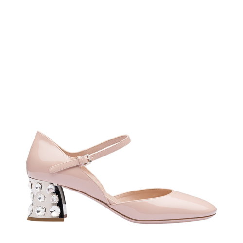MiuMiu/缪缪 裸粉色 女士仿水晶装饰跟玛丽珍中跟鞋 5I966C_XWA_F0236_F_055