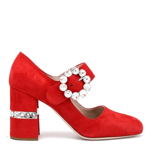 MiuMiu/缪缪 裸粉色 女士仿水晶装饰玛丽珍高中跟鞋 5I964C_LXN_F0236_F_055