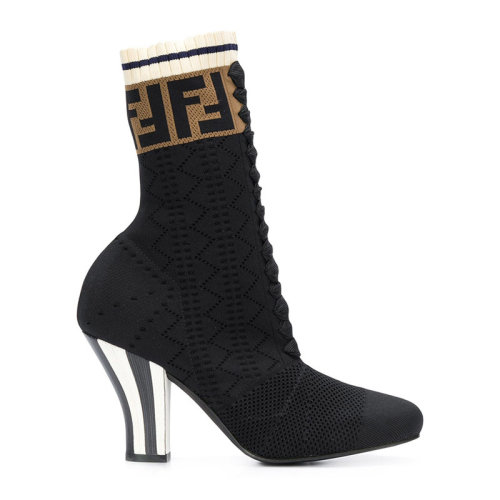 FENDI/芬迪 女士黑色袜子靴经典双F印花高帮高跟鞋长靴女鞋 8T6763-A3GZ-F13RH