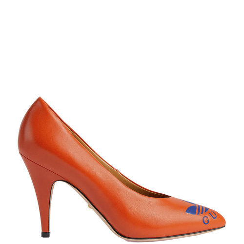 GUCCI/古驰 22年秋冬新款 adidas联名系列 女士橙色皮革Logo印花浅口高跟鞋702213C9D007519