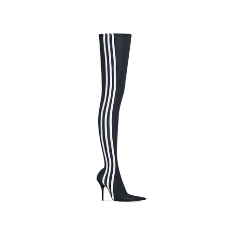Balenciaga/巴黎世家 22年秋冬新款 ADIDAS联名系列 女士黑色哑光氨纶面料三条纹高跟过膝靴724074W2ES11090