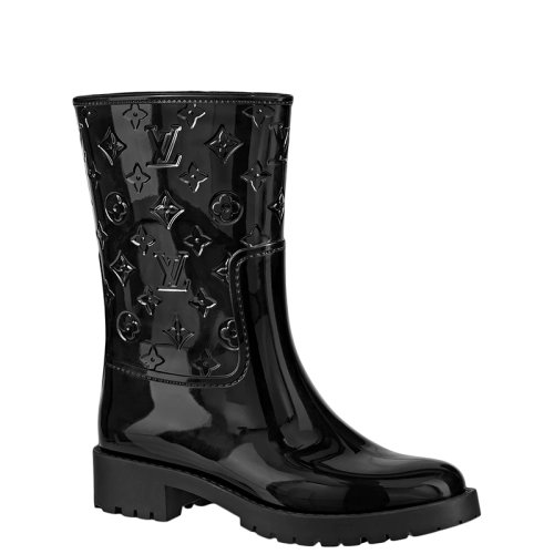 Louis Vuitton/路易威登 22年早春新款 DROPS系列 女士黑色防水橡胶老花压印纹路平地踝靴雨靴1A8QV0