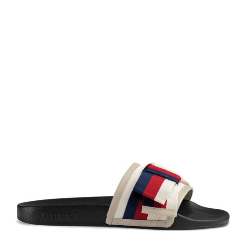 GUCCI/古驰 饰条纹织带 蝴蝶结丝缎 时尚黑色/白色 拖鞋女士凉拖 498316 KLWI0 1146