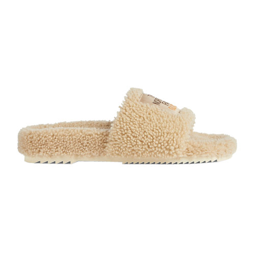 GUCCI/古驰 22秋冬款 The North Face联名系列 女士米色奴羊毛鞋面饰有LOGO织带标志平底拖鞋679948DEB009556