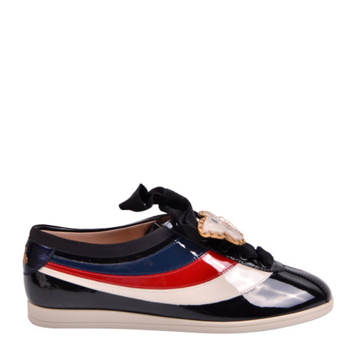 GUCCI/古驰 女士 Falacer 条纹蜜蜂水晶装饰 漆皮 低帮运动鞋系带休闲鞋 多色 493687 女鞋