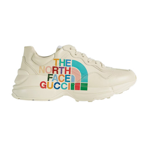 GUCCI/古驰 22秋冬款 The North Face联名系列 女士象牙色皮革饰有彩色LOGO印花备用鞋带低跟运动鞋685639DRW009522