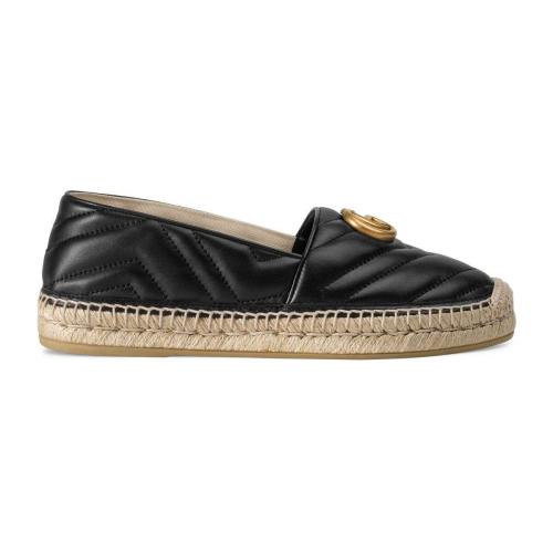 GUCCI古驰 22年秋冬 女士 饰双 G 皮革草编鞋 551890 BKO00 1000
